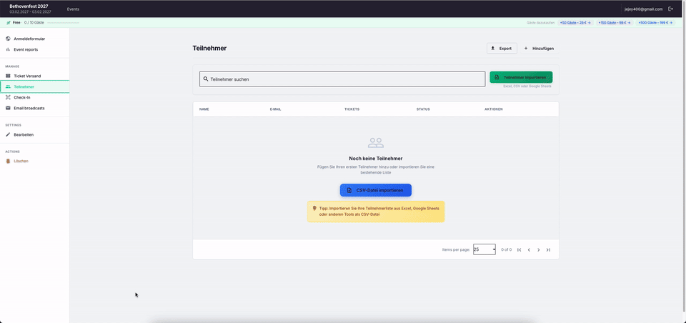 Erstellen Sie jetzt Ihr Event und importieren Sie Ihre Teilnehmer in Sekunden.